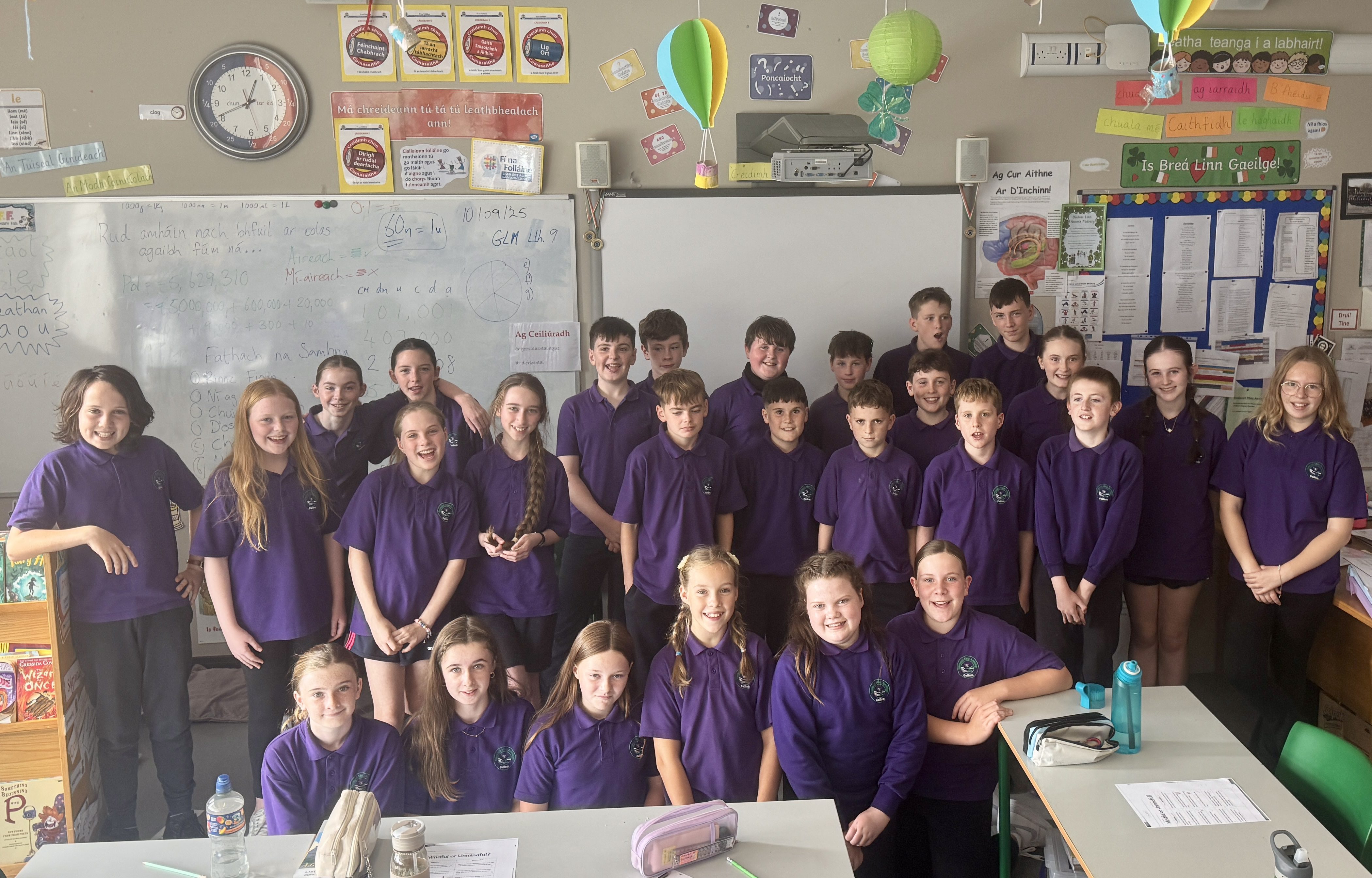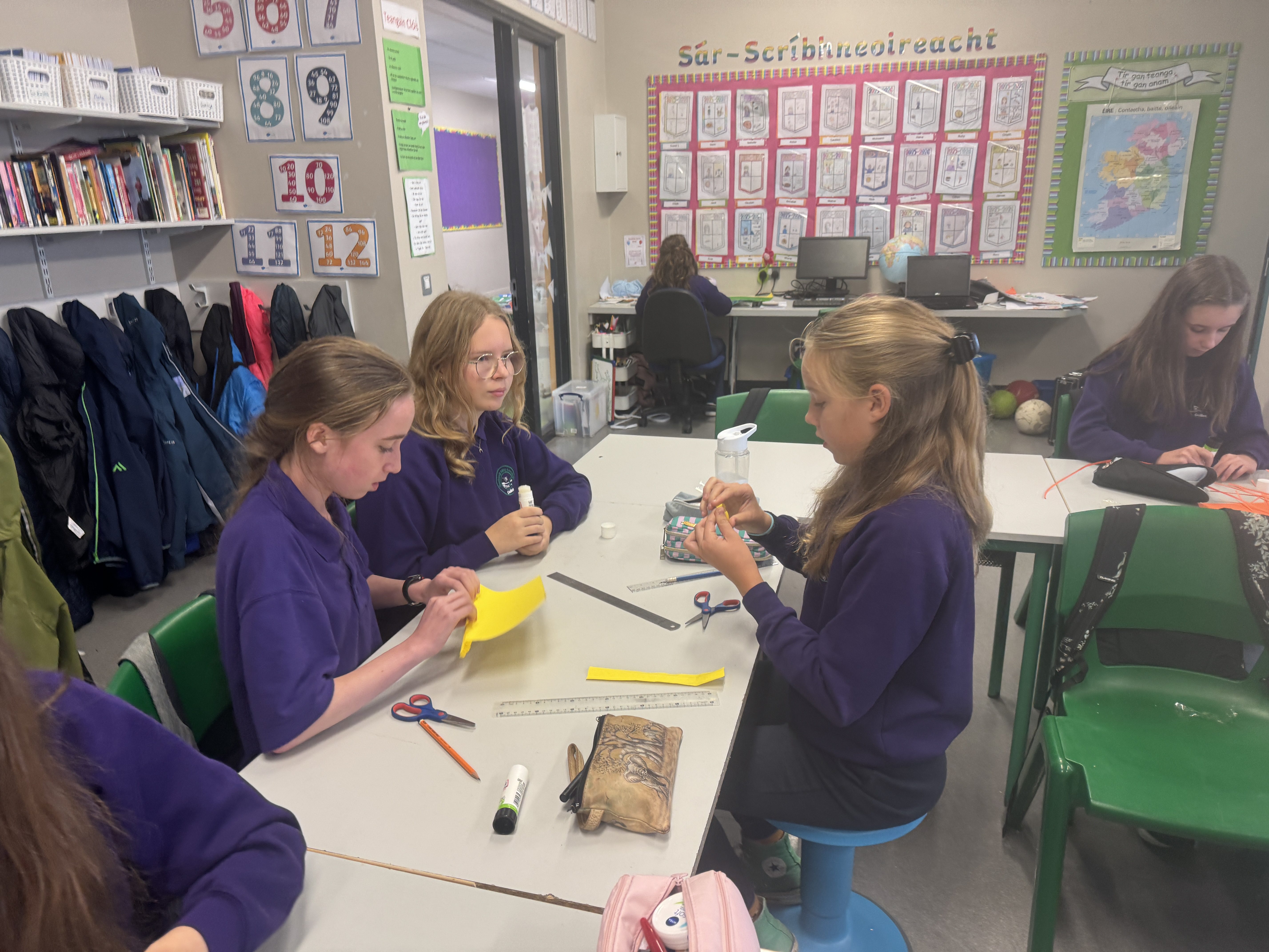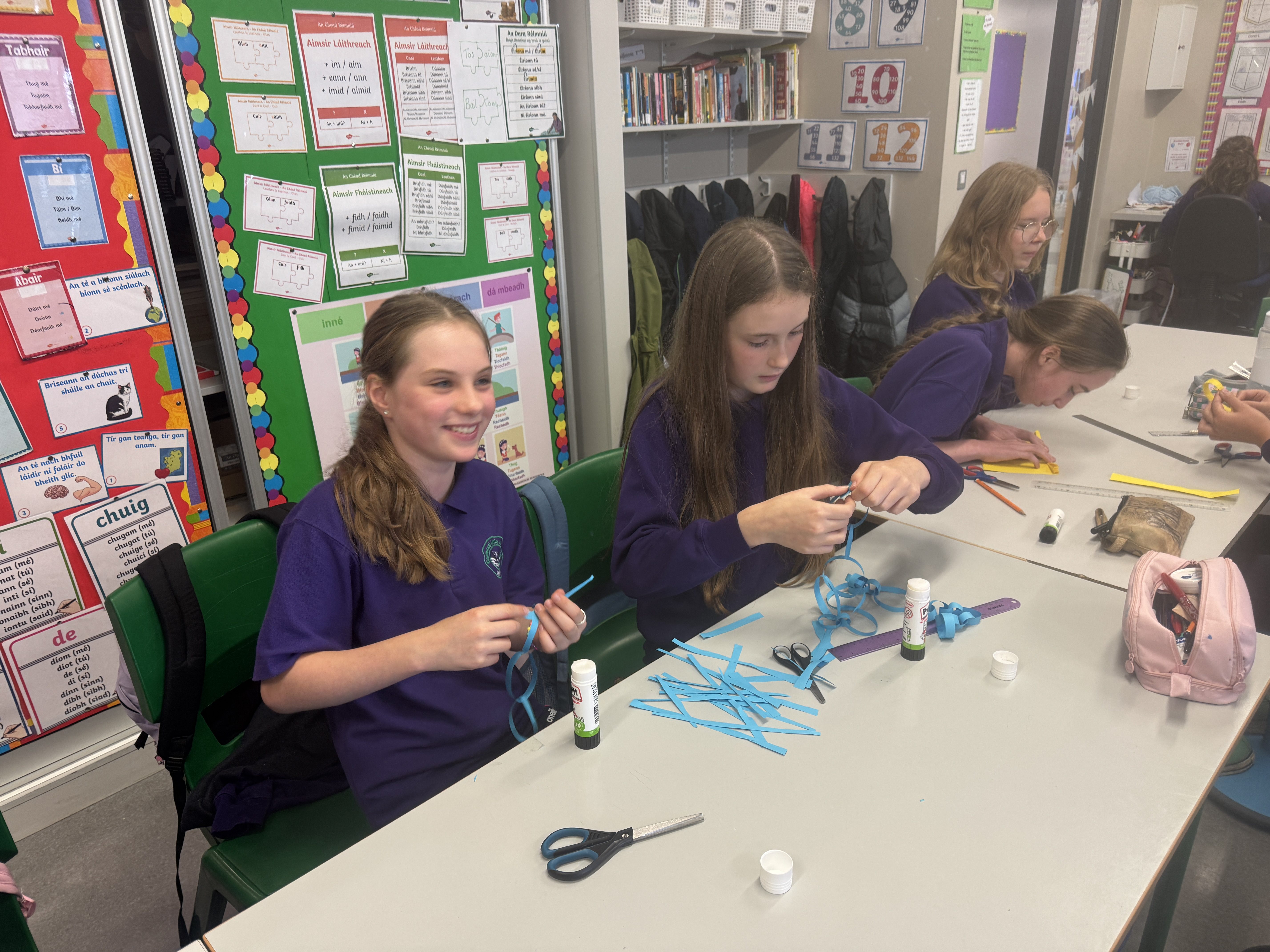 Bhí an-chuid spraoi againn ag obair le chéile ar an dúshlán simplí ETIM seo… slabhra páipéar a dhearadh ag úsáid leathanach A4 amháin, siosúr, téip agus peann luaidhe. Bhí Rang 6 an-cruthaitheach agus thar a bheith comórtasach!! Comhghairdeas leis na buateoirí: Muireann, Abbie agus Alana a d’éirigh leo slabhra 6m 97cm a chruthú taobh istigh de 10 nóiméád!